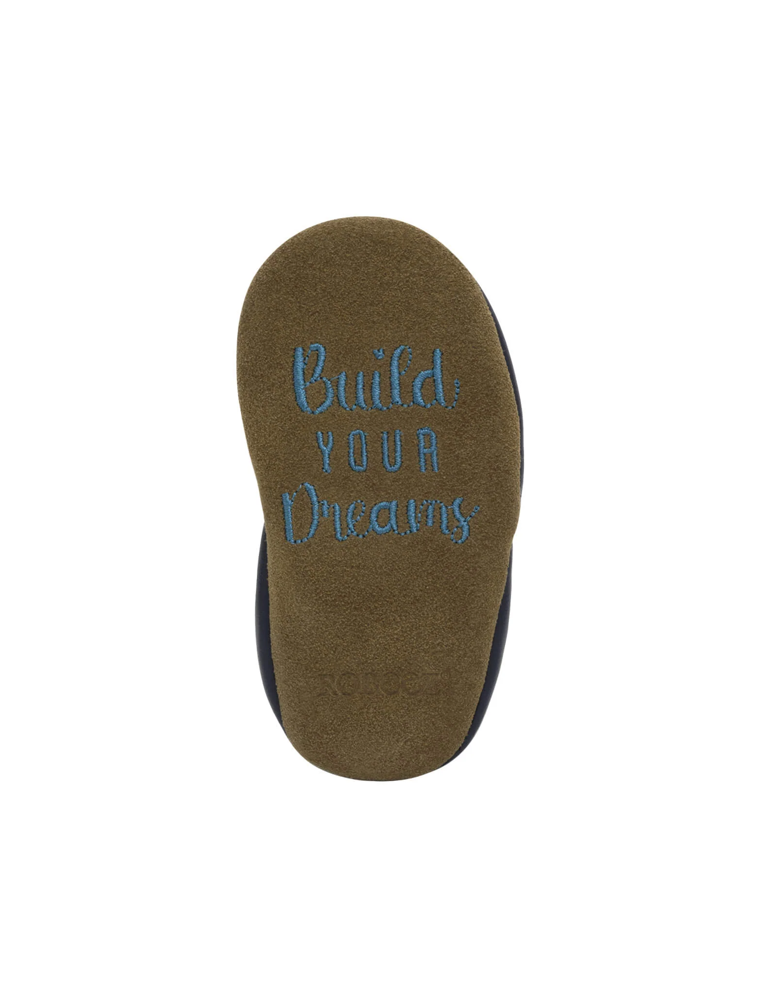 The Build Your Dreams Soft Soles in Navy inspire little builders to explore and imagine. Featuring a few construction vehicle graphics on a rich navy background, these soft soles combine fun design with everyday comfort. Crafted with a flexible suede outsole and a soft upper, they provide gentle grip and support for little feet as they take their first steps. With a roomy fit that encourages natural movement, these shoes are perfect for dreamers ready to build their next adventure.